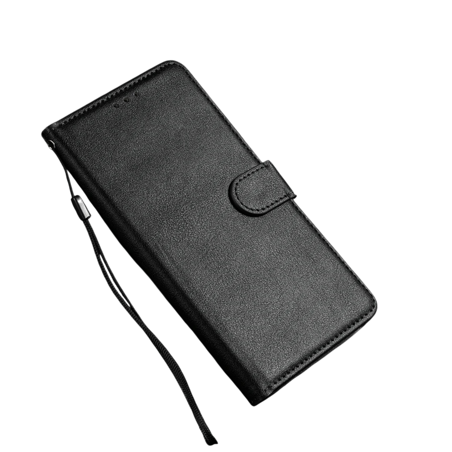 Tyylikäs suojakuori puhelimelle, jossa on korttitila, magneettisuljenta, teline ja käytännöllinen hihna. Täydellinen kuvaus