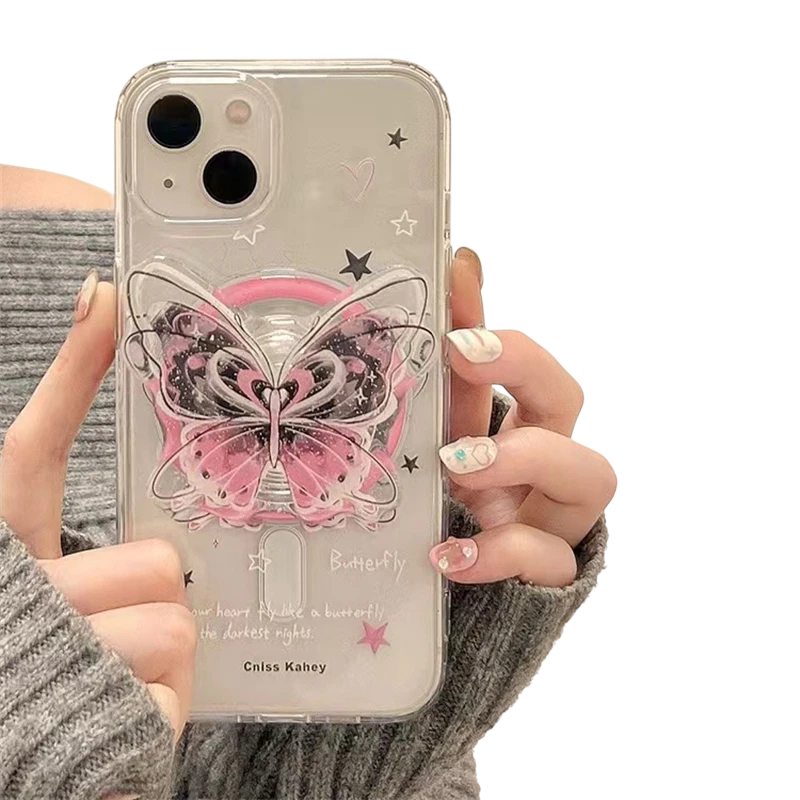 Magnettinen puhelinteline iPhone:lle Muovinen teline perhosaiheella Tyylikäs magneettinen pöytäteline
