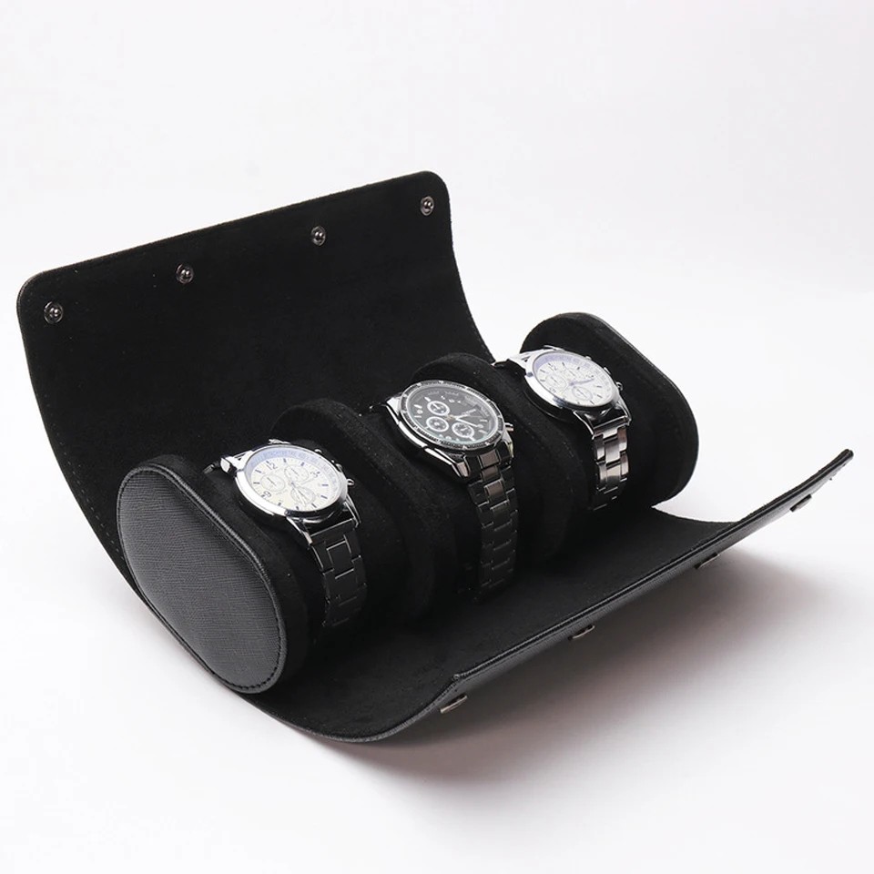 Matkakotelo kelloille 22 × 7 × 10 cm Rullattava järjestäjä 3 kellolle irrotettavilla tyynyillä matkakotelo kelloille