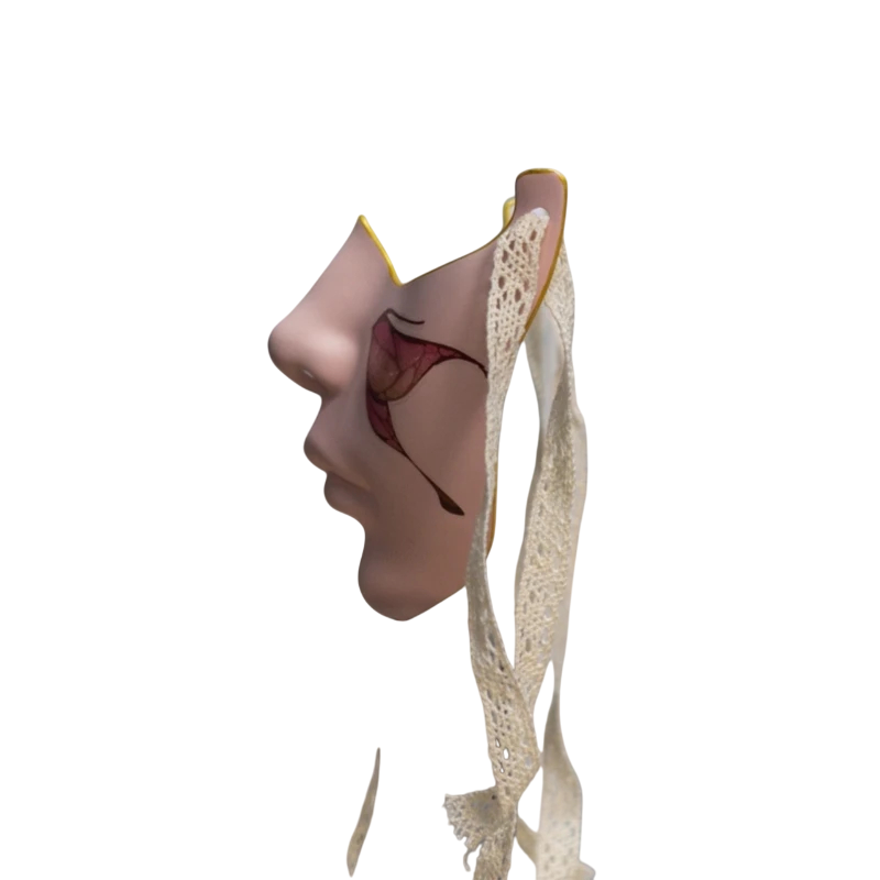 - Design: puolikas naamio tyylikkäällä kuvioinnilla