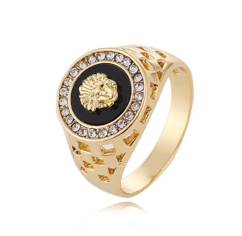 Tämä miesten sormus kivillä ja leijonanpäällä on erittäin muodikas asuste.