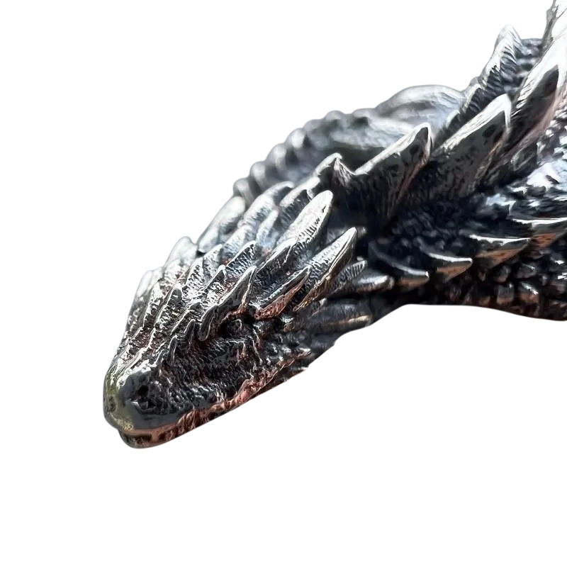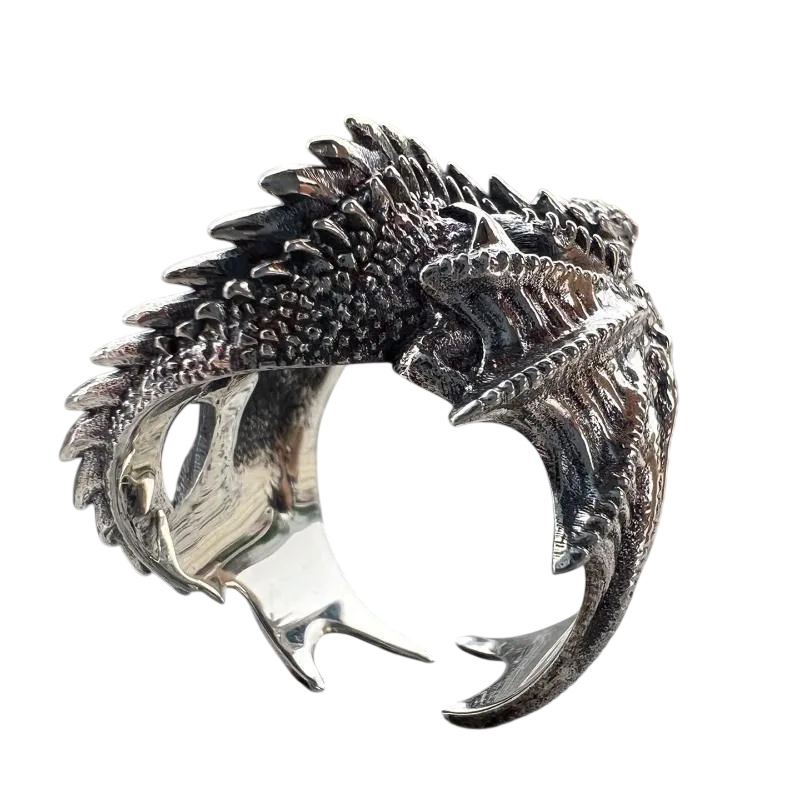 Tämä sormus on täydellinen valinta kaikille, jotka etsivät laadukasta ja ainutlaatuista korua goottityylillä. Säädettävän koon ansiosta se miellyttää jokaista miestä, joka arvostaa ainutlaatuista muotoilua ja mukavuutta käytössä. Seos, josta sormus on valmistettu, takaa pitkän käyttöiän ja kestävyyden, mikä tarkoittaa, että se palvelee sinua pitkään. Tämä sormus tulee olemaan paitsi muotilisä, myös ilmentymä persoonallisuudestasi ja tyylistäsi. Lisäksi se on loistava lahja kaikille, jotka ovat kiinnostuneita fantasiasta, goottikulttuurista tai lohikäärmeistä.