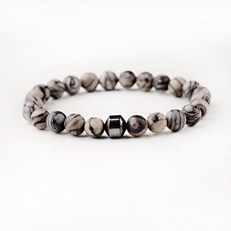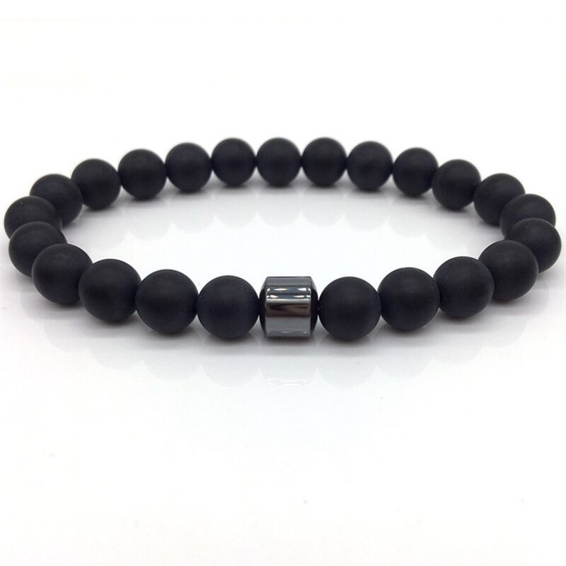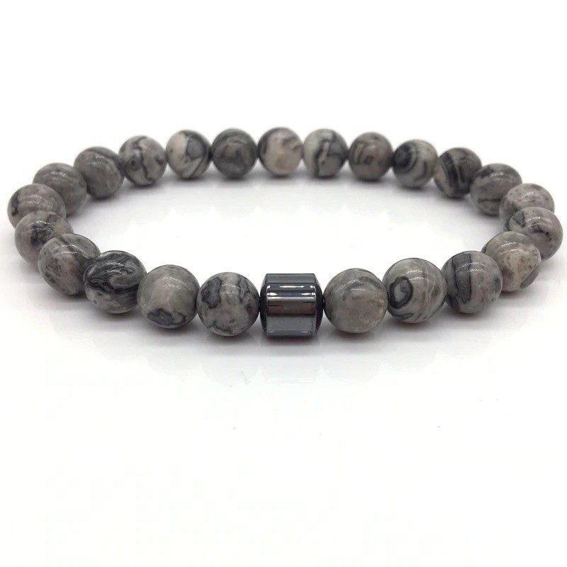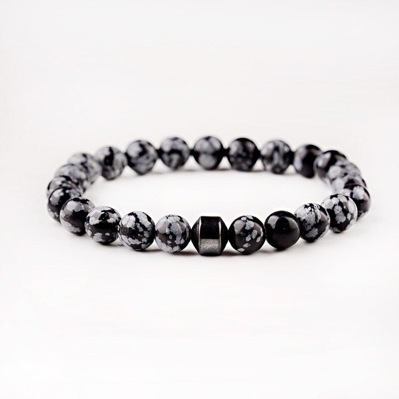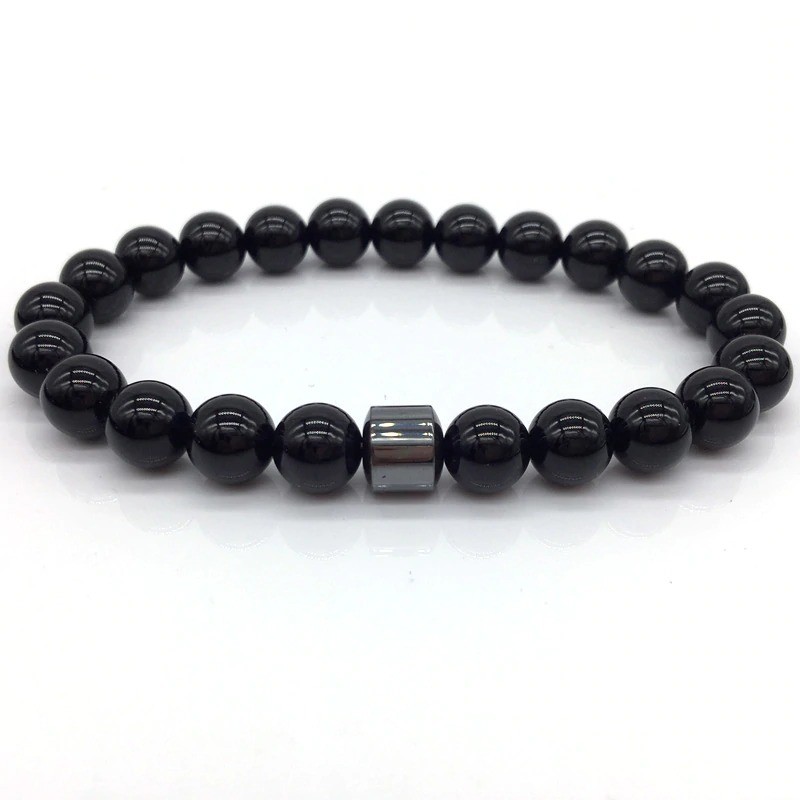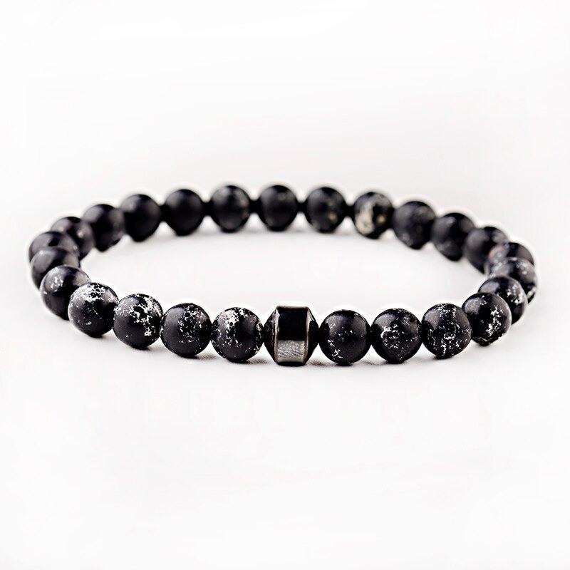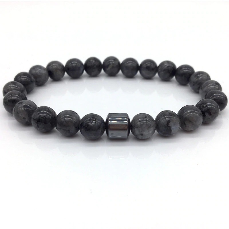 Miesten helmillä koristeltu rannekoru hematiitilla