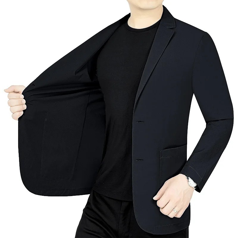 Etusivu Etusivu Vaatteet ja asusteet Miesten vaatteet Miesten puvut ja bleiserit Miesten bleiserit Miesten hengittävä polyesteritakki Tyylikäs yksivärinen takki miehille, jossa on taskut ja napit Kevyt takki työhön ja vapaa-aikaan