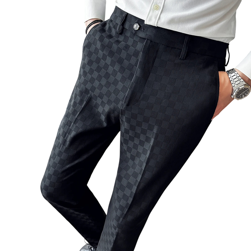- Tyylikkäät miesten juhlahousut hienolla ruutuprintillä moderniin ilmeeseen