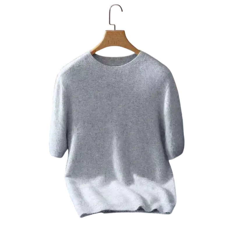 Tämä ylellinen miesten neule on valmistettu hienosta kashmirista, joka tunnetaan pehmeydestään, keveydestään ja mukavuudestaan. Lyhyiden hihojen ja O-kaula-aukon ansiosta se on täydellinen valinta lämpimille päiville, jolloin haluat pysyä tyylikkäänä ja samalla tuntea olosi mukavaksi. Yksivärinen muotoilu on hillitty, mutta samalla ajaton, ja se on helppo yhdistää housujen, farkkujen tai takin kanssa.