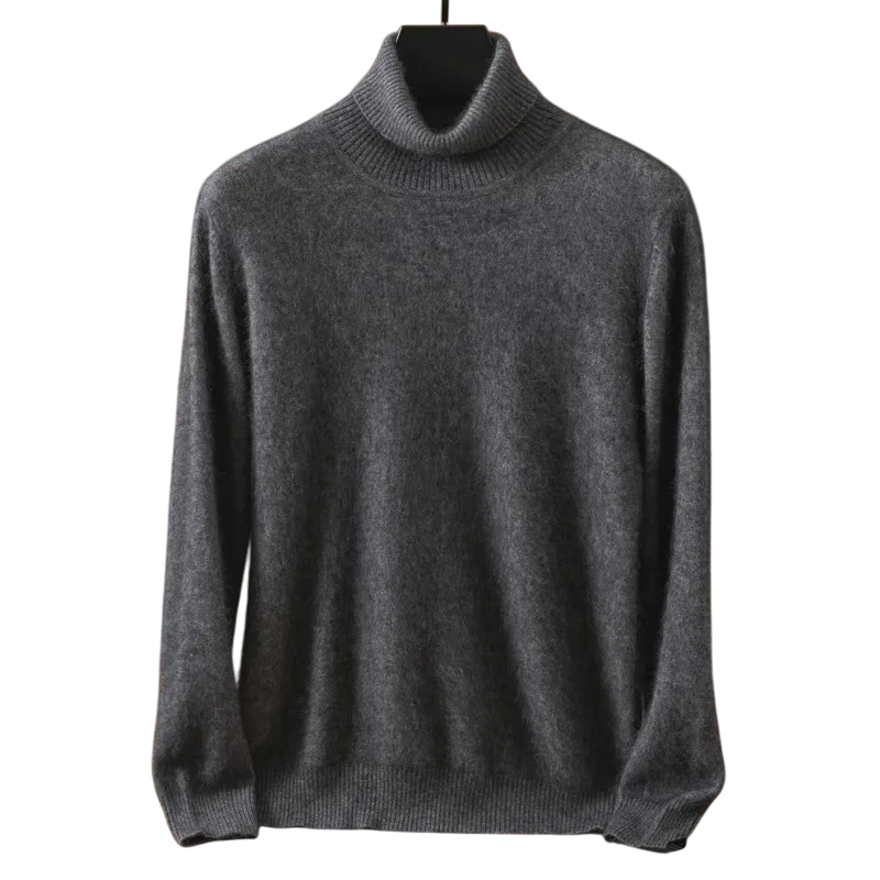Tämä miesten neule aidosta kashmirista on eleganssin, ylellisyyden ja mukavuuden symboli. Korkean kauluksen ja pitkien hihojen ansiosta se tarjoaa maksimaalista lämpöä jopa kylmimpinä päivinä. Sen pehmeä pinta on uskomattoman miellyttävä koskettaa, mikä takaa paitsi mukavan käytön myös houkuttelevan ulkonäön. Yksivärinen muotoilu antaa neuleelle ajattoman tyylin, joka yhdistyy helposti takkiin, farkkuihin ja tyylikkäisiin housuihin.
