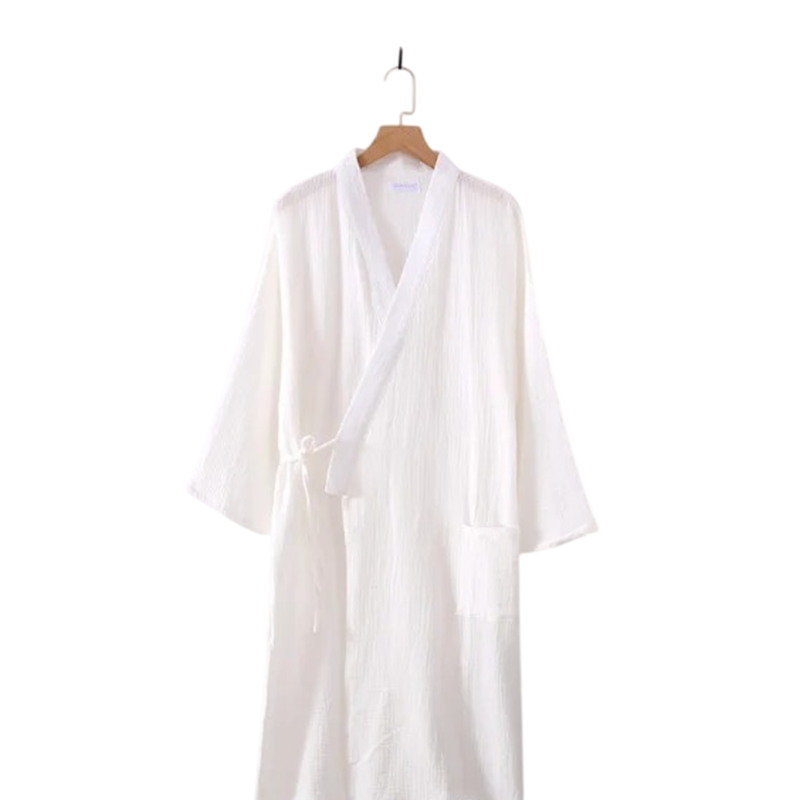 Aamutakki on ihanteellinen aamuisin heräämiseen, iltarentoutumiseen, viikonlopun rentoutumiseen tai lisävarusteeksi kotiasuille. Puuvilla on kestävä, helppohoitoinen ja sen laadun ansiosta se säilyttää muotonsa ja mukavuutensa myös pitkän käytön jälkeen. Kimono-hihat tukevat luonnollista liikkuvuutta ja antavat aamutakille ajattoman ilmeen, joka on saanut inspiraationsa perinteisestä japanilaisesta estetiikasta. Kevyen rakenteensa ansiosta aamutakki sopii myös matkustamiseen, jossa arvostat sen pakattavuutta ja mukavuutta. Minimalistinen tyyli tekee siitä monikäyttöisen vaatekappaleen, joka sopii kaikille ikäryhmille.