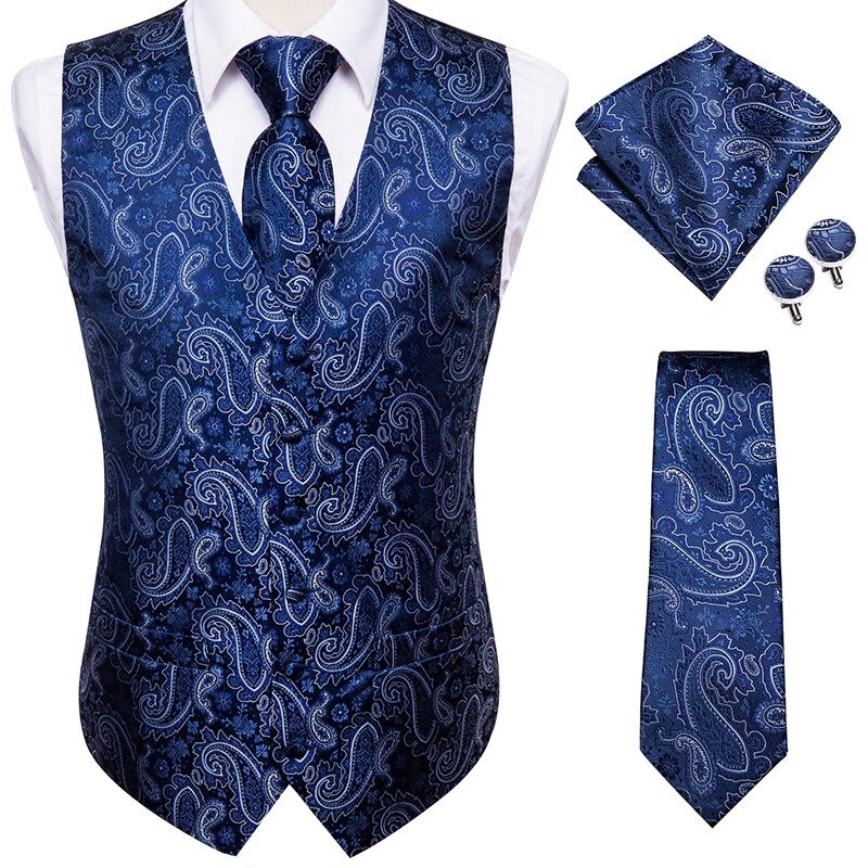 Pakkauksen sisältö: 1 x liivi, 1 x solmio, 1 x taskuliina, 2 x kalvosinnapit