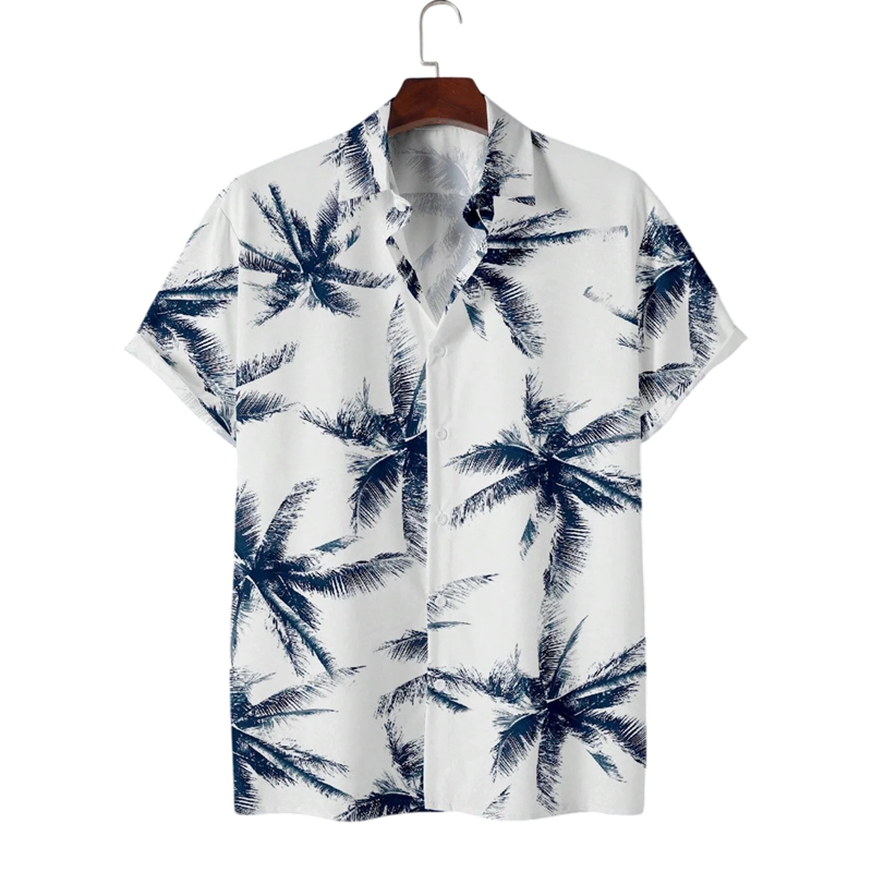 Kesäinen miesten paita palmupotilla, lyhyillä hihoilla ja V-pääntiellä tarjoaa mukavuutta, joustavuutta ja rentoa tyyliä lämpimiin päiviin. Täydellinen kuvaus