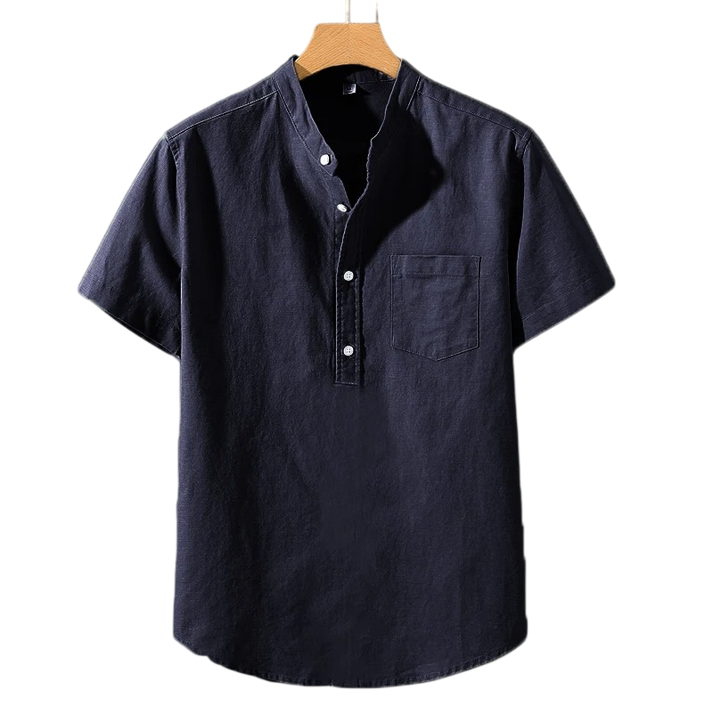 Mukava miesten lyhythihainen polo-paita puuvillasta, jossa on kaulus ja napit, tarjoaa ajattoman ilmeen päivittäiseen käyttöön. Täydellinen kuvaus