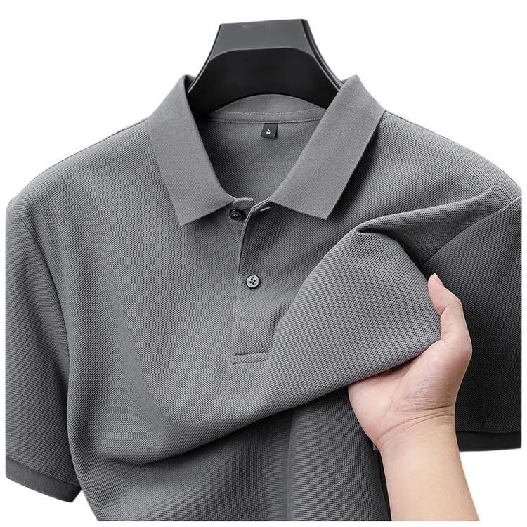 Yksivärinen miesten puuvillapolo kauluksella ja napilla tarjoaa ajattoman ilmeen, mukavuutta ja monipuolista käyttöä joka päivä. Täydellinen kuvaus