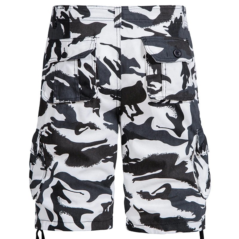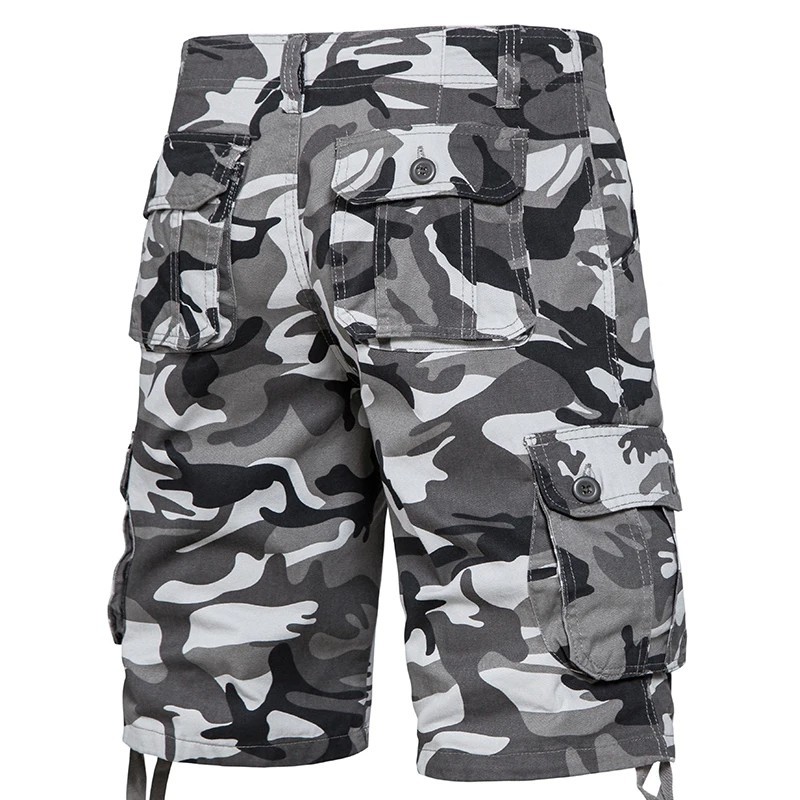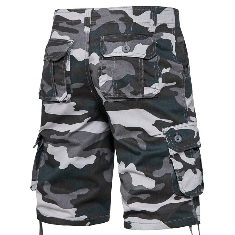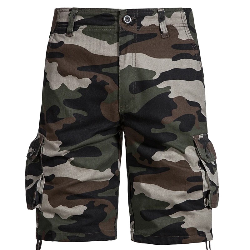 Miesten naamiointikuvioiset puuvillaiset ulkoshortsit, hengittävät lyhyet housut sivutaskuilla, polvipituiset, mukavat kesäshortsit vaellukseen ja vapaa-aikaan