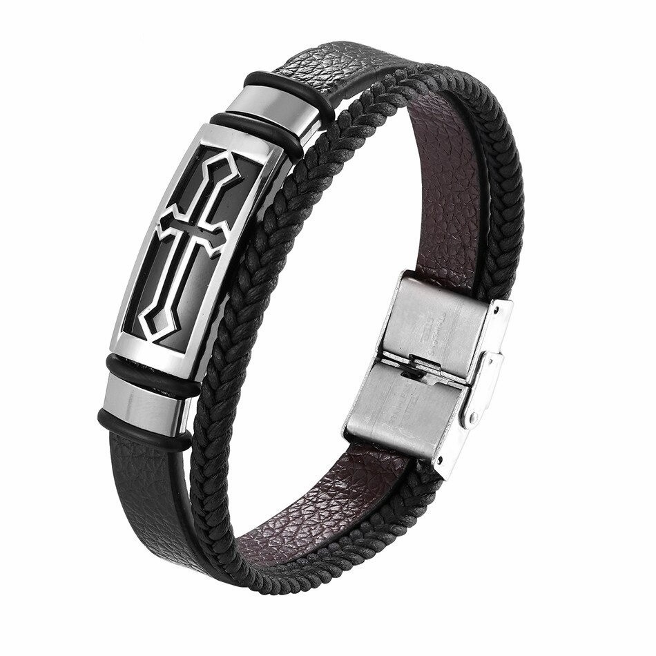 Miesten nahkainen rannekoru ristillä