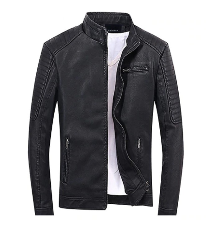 Miesten nahkatakki turkisreunuksella J2067