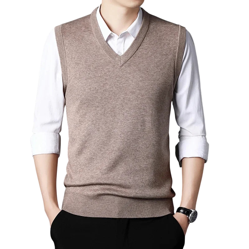 Miesten neuleliivi ilman hihoja Puuvillasta ja villasta valmistettu yksivärinen V-pääntiellä varustettu liivi Tyylikäs moderni miesten liivi useissa väreissä