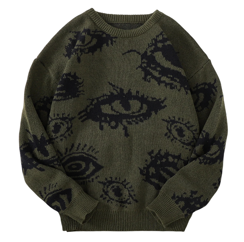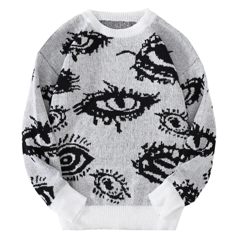 1× miesten pyöreäkauluksinen neule abstraktilla silmäkuviolla (valittu väri ja koko)