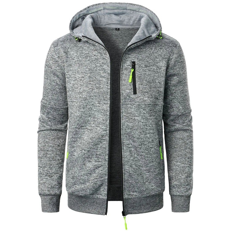 Miesten vetoketjullinen huppari Urheilullinen siirtymätakki taskuilla Kontrastiväriset vetoketjut Pehmeä takki kevääksi ja syksyksi kaupunkiin sekä retkille