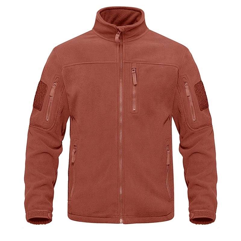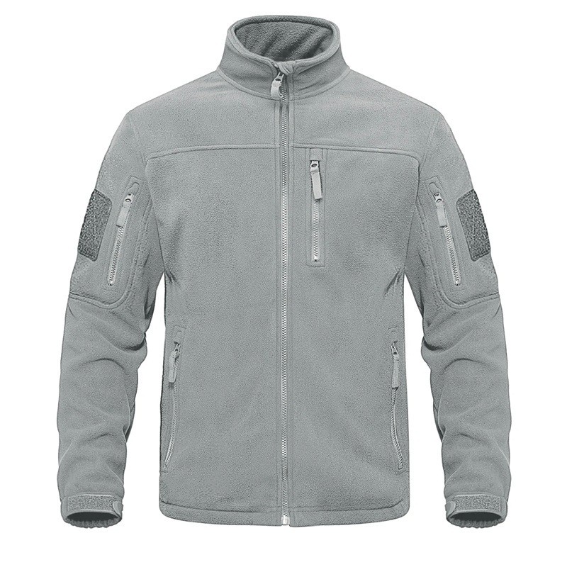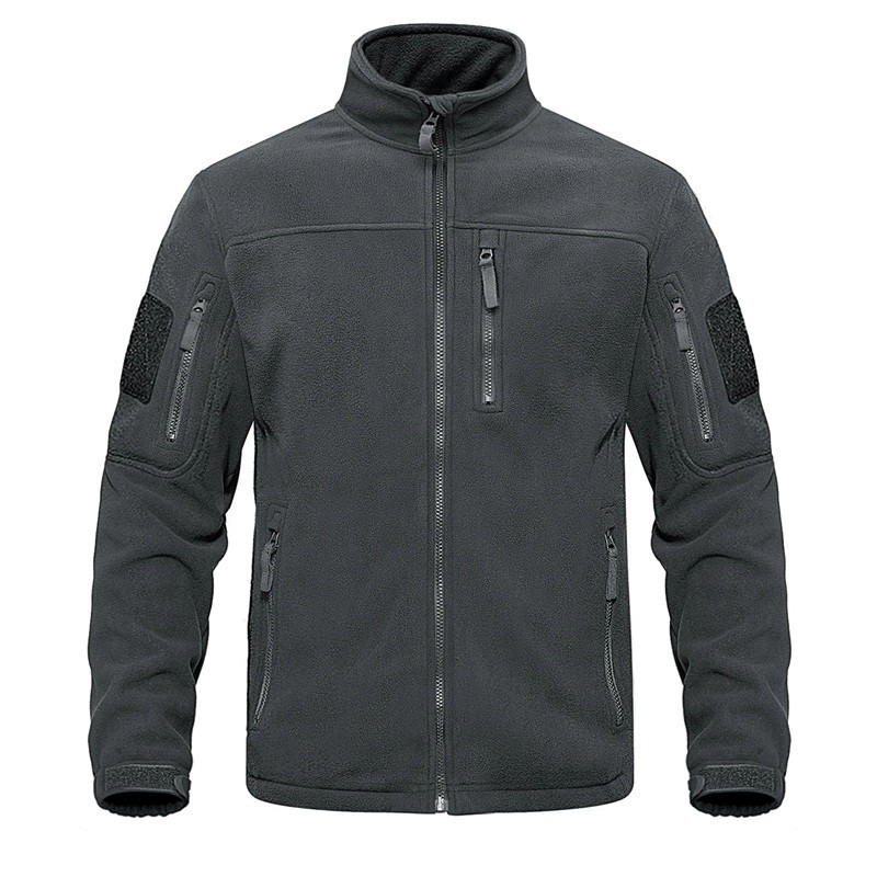 Miesten taktinen ulkoilufleecetakki useilla vetoketjullisilla taskuilla, korkea kaulus, tuulenpitävä vaellusvaatetus
