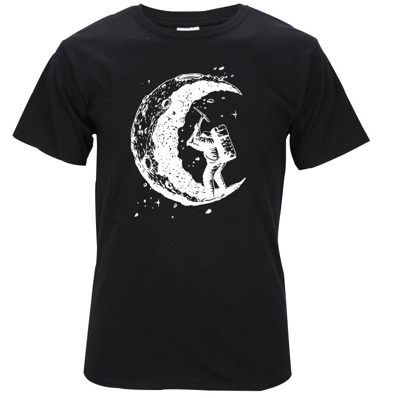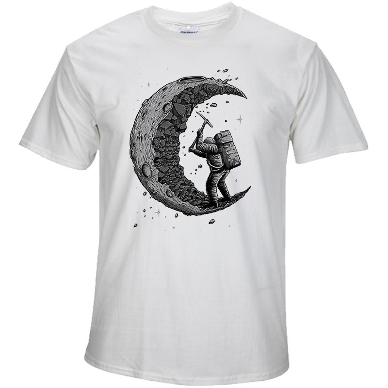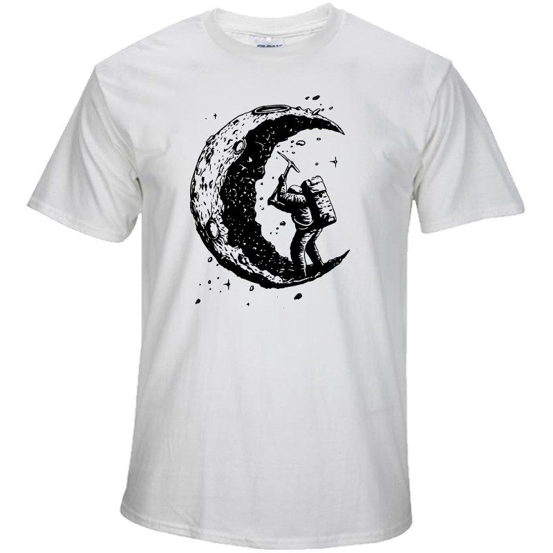 Meillä on teille tämä kaunis tyylikäs t-paita, joka esittää astronauttia, joka potkii kuuta lapion kanssa.