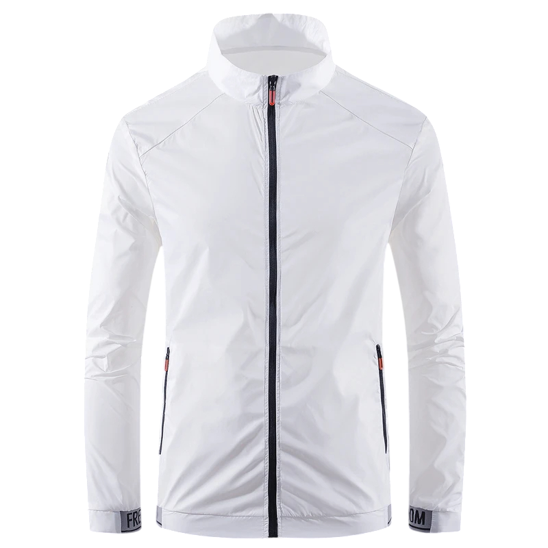 Kevyt miesten takki, ihanteellinen kesään, suojaa tuulelta ja auringolta. Erittäin ohut, hengittävä ja helppo pakata mukaan matkoille ja urheiluun. Täydellinen kuvaus