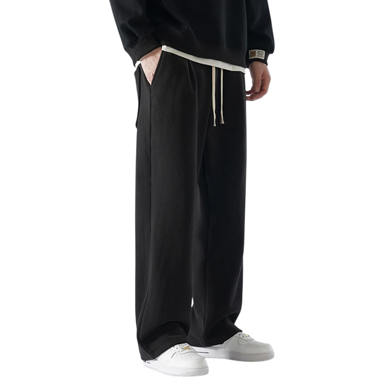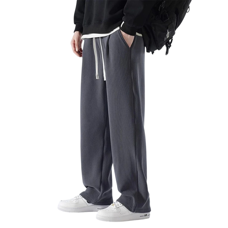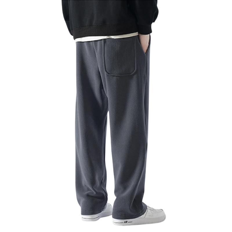 Miesten verkkarit karvavuorella, yksiväriset, taskuilla ja narulla. Valmistettu polyesterista ja spandexista, täydelliset talvipäiviin, lämpimät ja mukavat. Täydellinen kuvaus