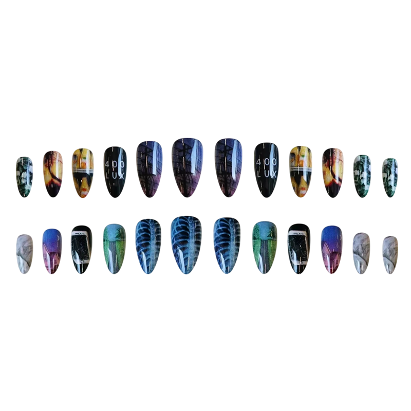 Kiiltävät keinokynnet mantelin muodossa ja leikkisillä kuvioilla takaavat nopean käsien hoidon, mukavan käytön ja luonnollisen ulkonäön. Täydellinen kuvaus