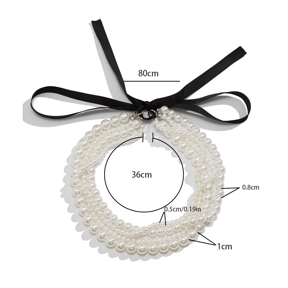 Tyylikäs monikerroshelmi choker, jonka ympärysmitta on 36 cm ja jossa on musta solmu. Ihanteellinen muodolliseen ja päivittäiseen käyttöön, lisää viehätystä ja hienostuneisuutta asuusi. Täydellinen kuvaus