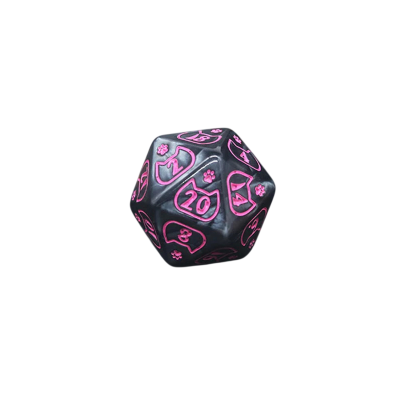 Tämä monikulmaisten noppien setti on täydellinen valinta pöytäpelien pelaajille, jotka etsivät yhdistelmää omaperäisyydestä, leikkisästä designista ja toimivuudesta. Seitsemän osan setti sisältää kaikki perusnoppatyypit, joita tarvitaan RPG-peleissä, fantasiakampanjoissa ja klassisissa seurapeleissä. Musta väritys kontrastisella vaaleanpunaisella kissamotiivilla luo erottuvan ja tunnistettavan ilmeen, joka heti kiinnittää huomion pelipöydällä. Nopat on suunniteltu istumaan hyvin käteen ja mahdollistamaan mukavan ja sujuvan heiton. Ne sopivat sekä aloittelijoille että kokeneille pelaajille, jotka haluavat piristää pelivarusteitaan.