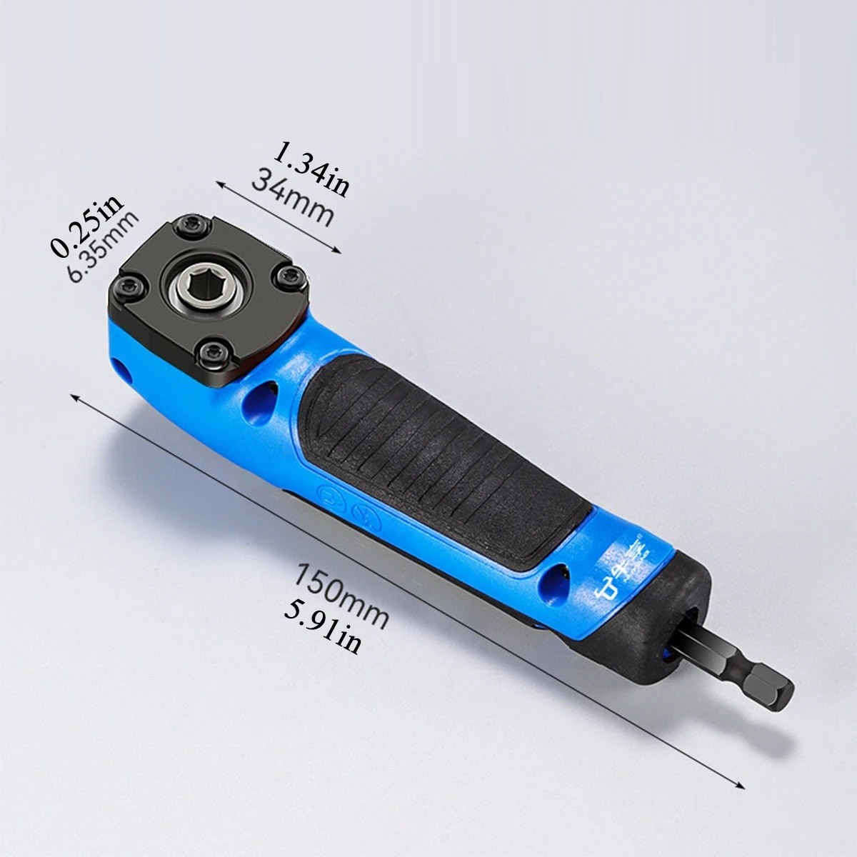 Tämä käytännöllinen kulmaadapteri on suunniteltu kaikille, jotka työskentelevät usein rajoitetuissa tiloissa, joissa perinteisen suoran ruuvimeisselin tai porakoneen käyttäminen ei ole mahdollista. 90° kulmarakenteen ansiosta se mahdollistaa mukautuvan ruuvauksen kulmissa, reunoilla, kaappien sisällä, laitteiden takana tai kapeissa teknisissä väleissä. Kestävä rakenne takaa pitkän käyttöiän ja luotettavan voiman siirron myös vaativammissa asennustöissä.