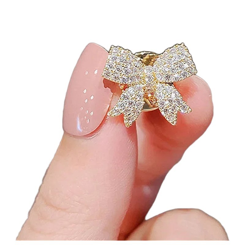 Tämä muotipinssi, joka on muotoiltu rusetiksi, on hieno, mutta silmiinpistävä lisä, joka tuo jokaiselle asulle tyylikkään vivahteen. Kompaktin koon 1,8 cm ansiosta se on hienovarainen, mutta silti huomion herättävä tarkasta viimeistelystä. Laadukas sinkkileje takaa muodon kestävyyden ja vakauden päivittäisessä käytössä. Koristeelliset kivet antavat pinssille hienoa kiiltoa, joka sopii sekä päivittäisiin vaatteisiin että juhlatilaisuuksiin. Pinssi on helppo yhdistää takkiin, bleiseriin, mekkoon ja laukkuun.