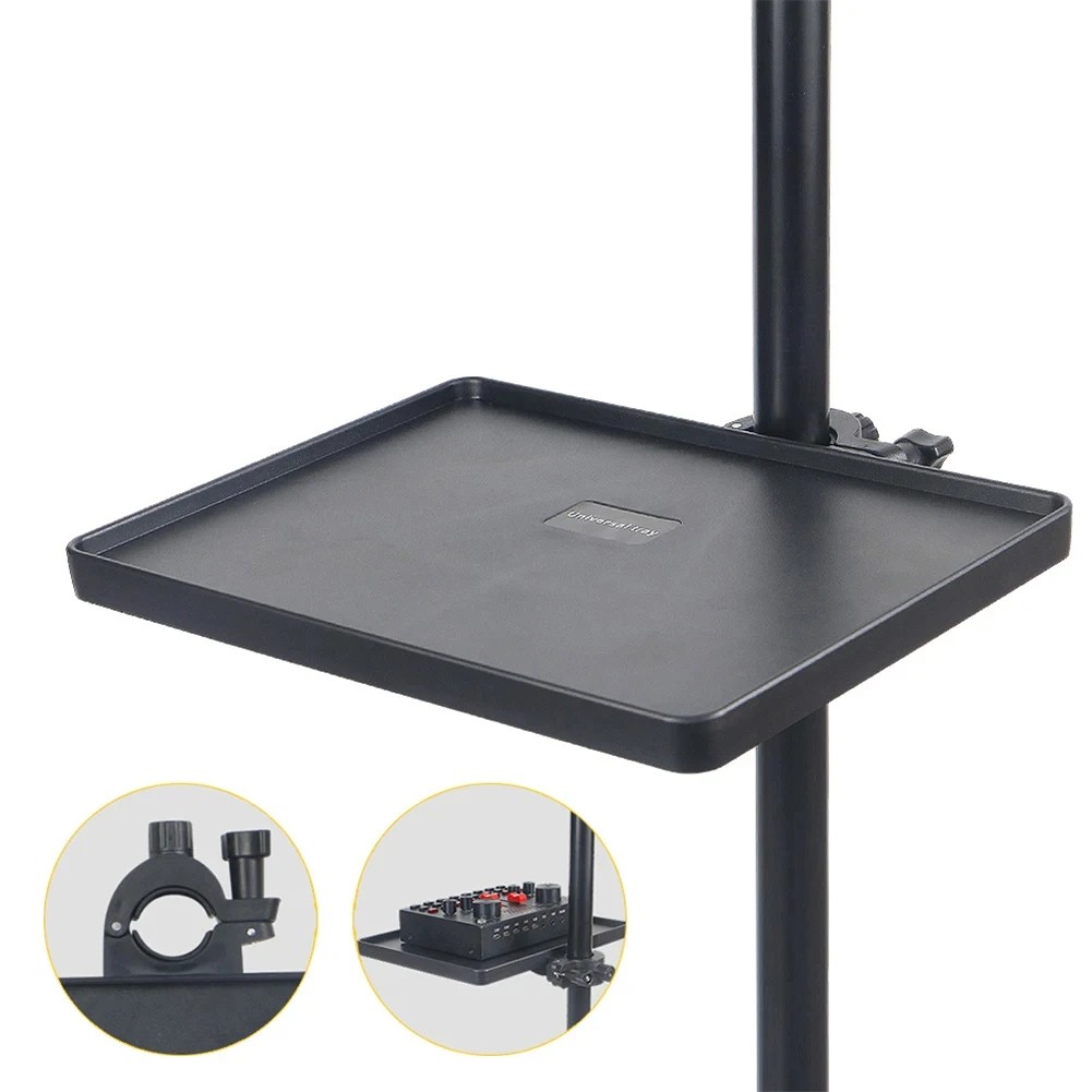 Tämä käytännöllinen muovialusta tarjoaa yksinkertaisen ja tehokkaan ratkaisun varusteiden säilyttämiseen soittamisen, nauhoittamisen tai live-lähetyksen aikana. Alhaisen painon ja helpon asennuksen ansiosta se voidaan kiinnittää lähes mihin tahansa mikrofonitelineeseen ilman työkaluja.