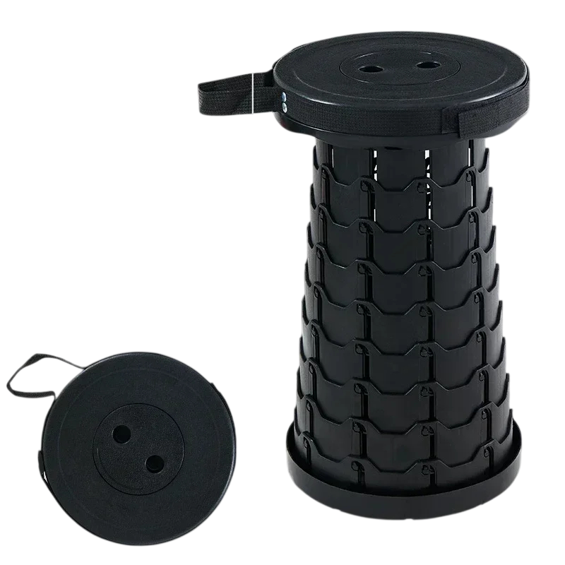 Muovinen taitettava teleskooppituoli korkeus jopa 45 cm 25 x 6 cm Kannettava säädettävä jakkara kantohihnalla Kestävä retkituoli