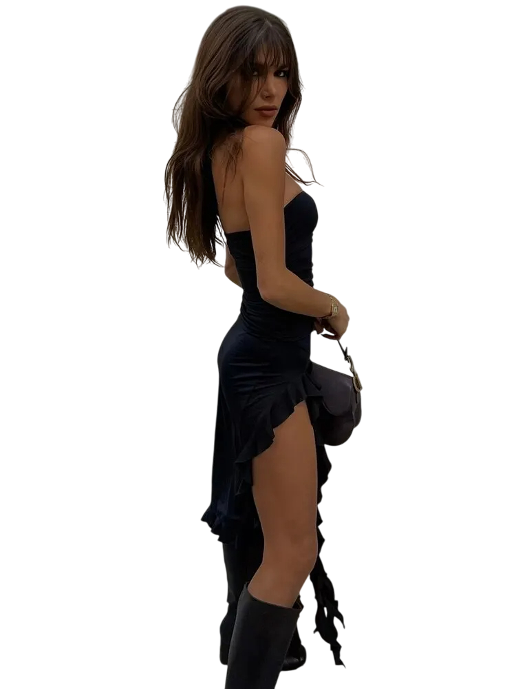 Pakkauksen sisältö: 1 x musta juhlamekko röyhelöillä