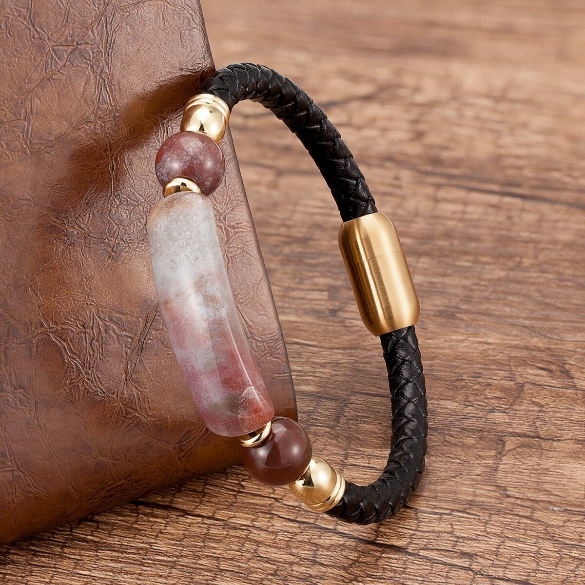 Nahkaranneke luonnonkivillä