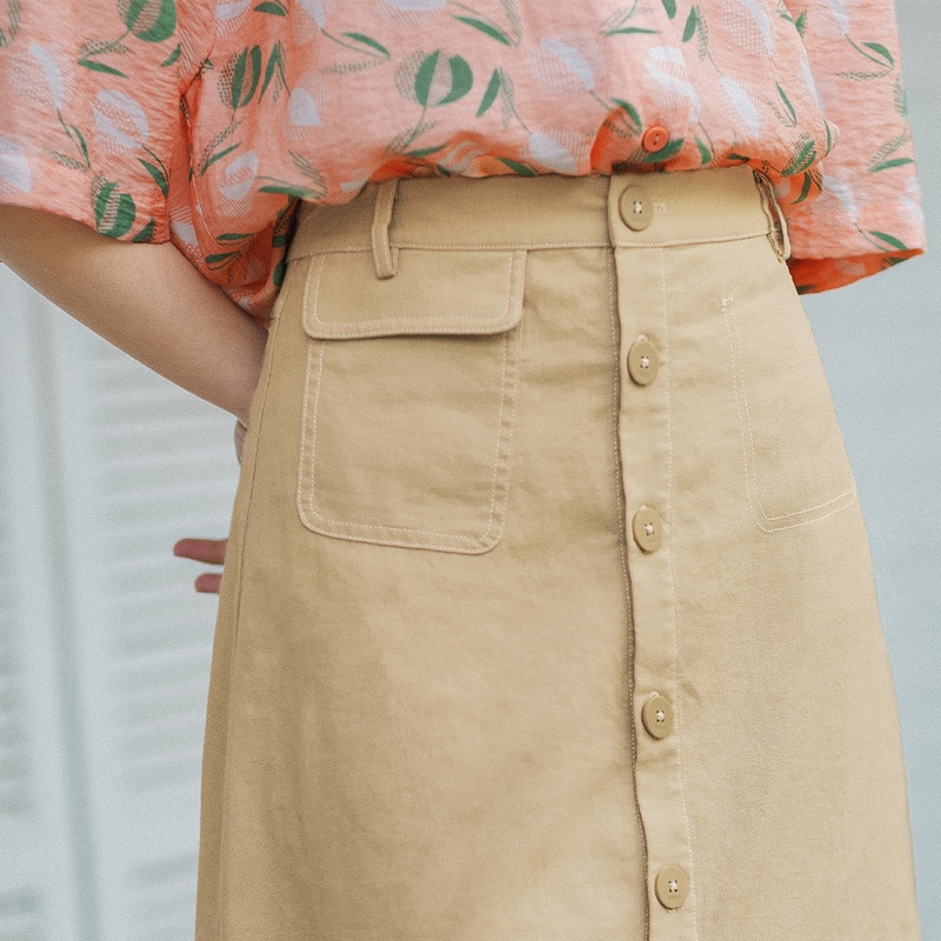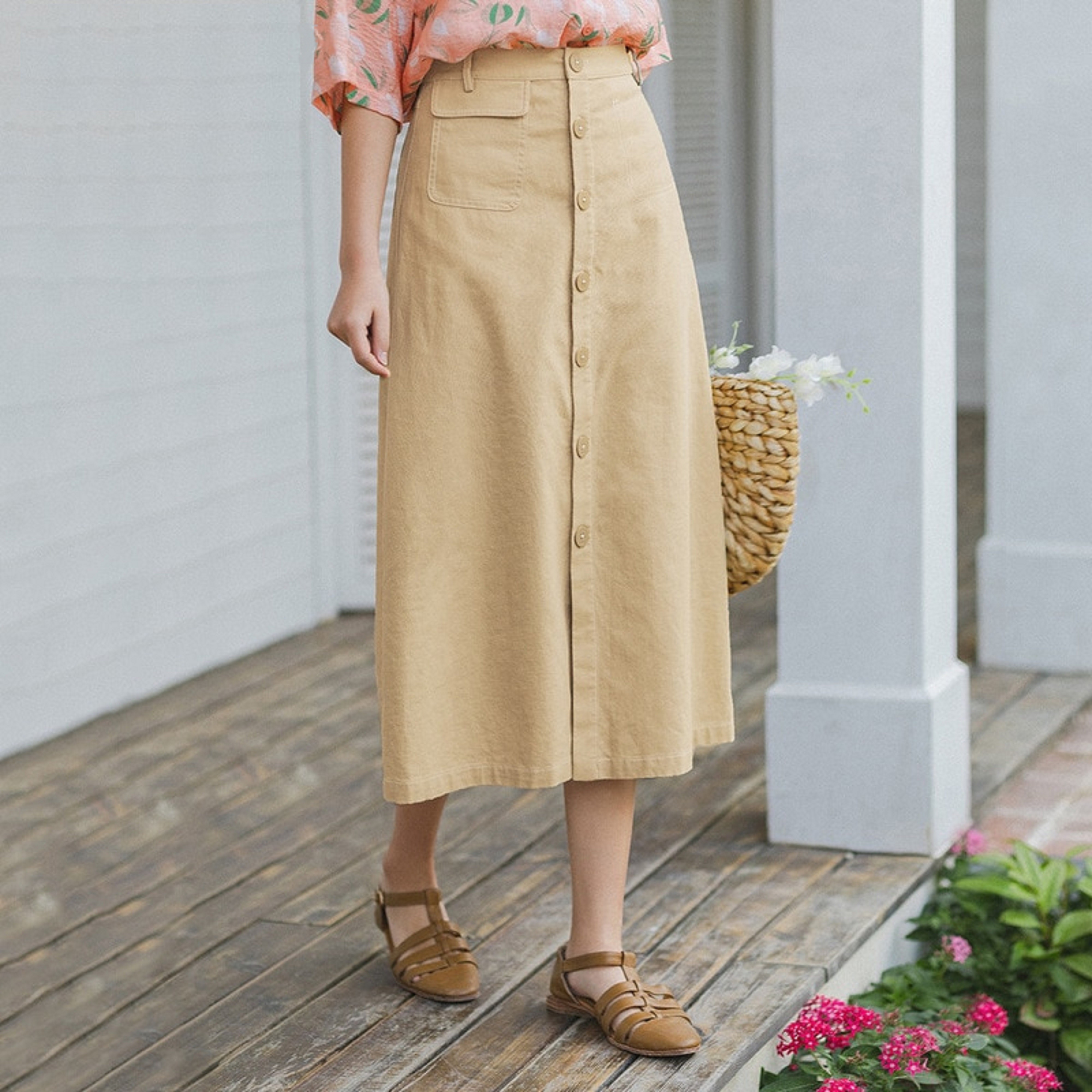 Naisille tarkoitettu midi-hame napilla