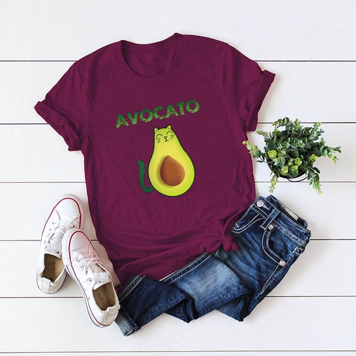 Naisten avokadokuvioinen t-paita