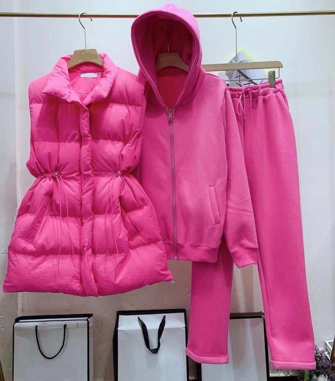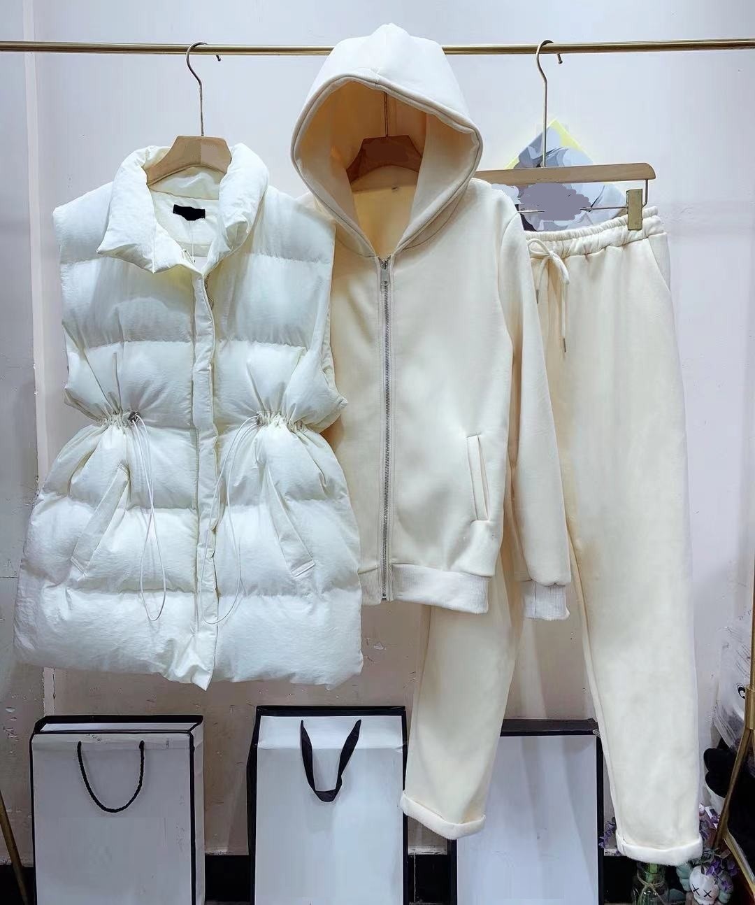 Naisten collegepaita, verkkarit ja liivi