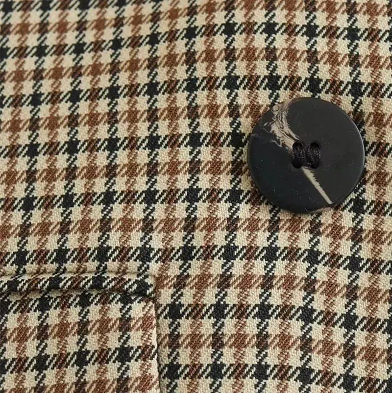 Tämä malli edustaa täydellistä tasapainoa eleganssin ja käytännöllisyyden välillä. Polyesterimateriaali takaa pitkän käyttöiän ja pitää takin aina uutena. Raidallinen kuvio antaa vaatteelle rakennetta ja visuaalisesti hoikentaa vartaloa, kun taas harmaa sävy näyttää ammattimaiselta ja ajattomalta. Kauluksen ja nappien ansiosta takki näyttää huolitellulta ja tyylikkäältä joka tilaisuudessa. Se on monikäyttöinen vaate, joka on helppo yhdistää housujen, hameen tai farkkujen kanssa ja luoda tyylikäs asu joka päivälle.