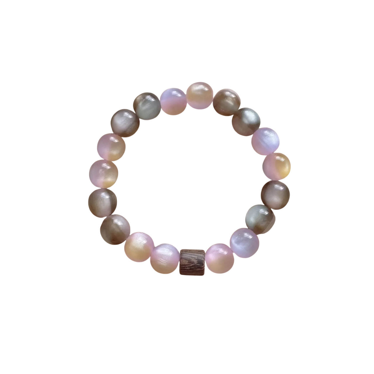 Naisten rannekoru helmistä, luonnonkivestä ja puusta. Yksi koko, ihanteellinen päivittäiseen käyttöön, tuo harmoniaa ja luonnollista kauneutta. Täydellinen kuvaus