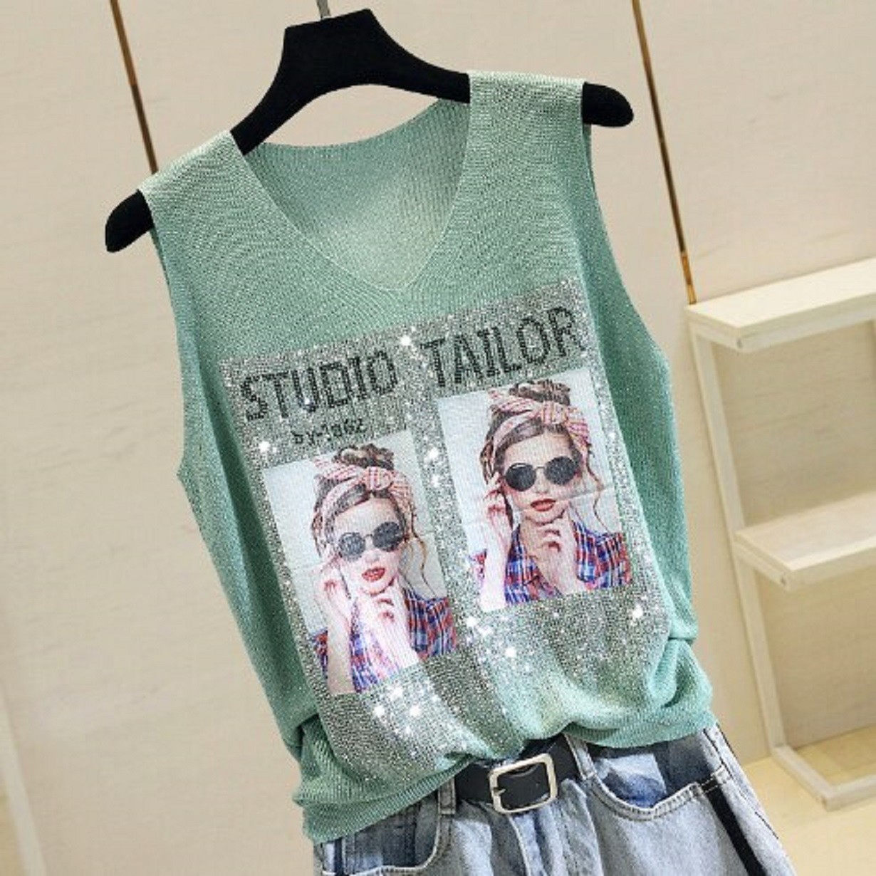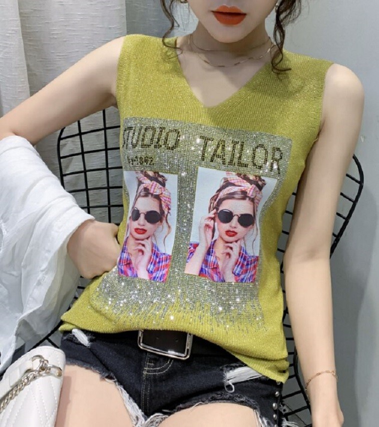 Naisten hihaton paita, jossa on printti