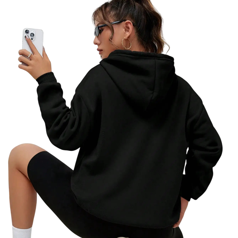 Naisten huppari taskuilla Los Angeles -kirjailulla Yksivärinen polyesterihuppari Mukava vapaa-ajan vaate pehmeästä polyesterista eri väreissä