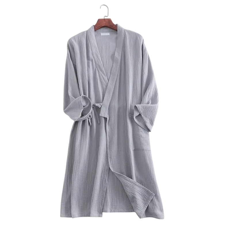 Tämä aamutakki on ihanteellinen aamurutiiniin, iltarentoutumiseen tai kevyeksi lisäks yöpuvulle. Minimalistinen muotoilu tekee siitä elegantin ja monikäyttöisen, joten sitä voivat käyttää naiset kaikissa ikäryhmissä. Puuvilla on luonnostaan kestävä, helppohoitoinen ja pitkäikäinen, mikä varmistaa, että aamutakki pysyy erinomaisessa kunnossa myös pitkän käytön jälkeen. Kimono-hihat tarjoavat liikkumavapautta ja antavat aamutakille alkuperäisen ilmeen, joka on inspiroitunut perinteisestä tyylistä. Kevyytensä ansiosta aamutakki sopii myös matkustamiseen tai viikonloppureissuille.