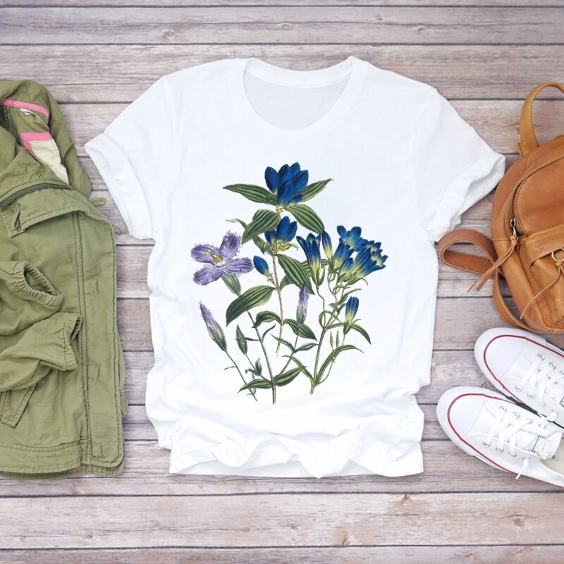 Naisten kukkakuvioinen T-paita B374