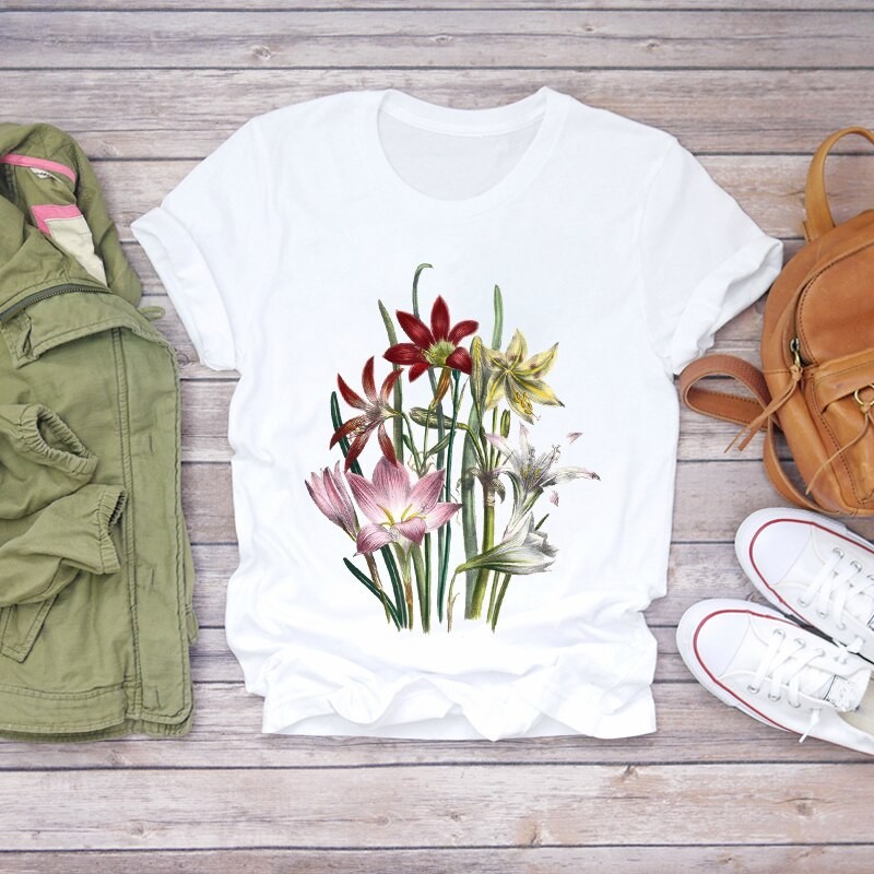 Naisten kukkakuvioinen t-paita