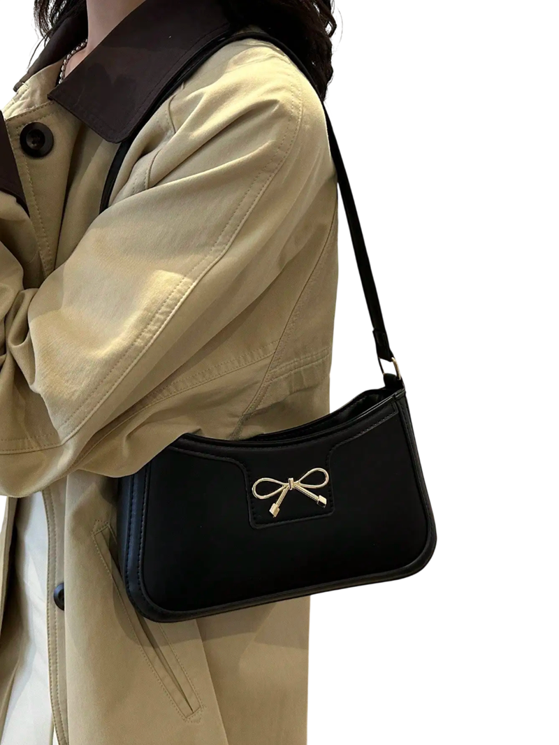 Naisten laukku rusetilla 24 x 5 x 28,5 cm Tyylikäs olkalaukku keinonahasta polyesterivuorella päivittäiseen käyttöön