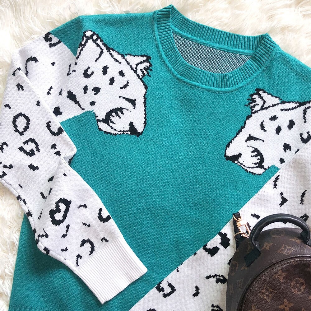 Naisten leopardikuvioinen neulepusero