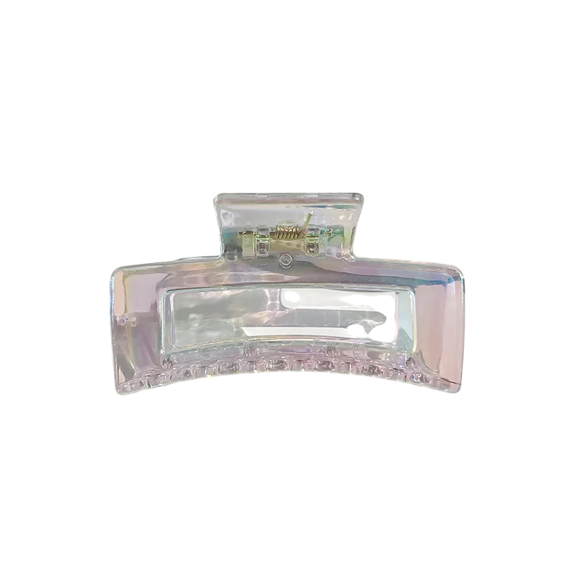 Moderni naisten hiusklipsi viehättää elegantilla kaarevalla muotoilullaan ja hienolla holografisella efektillään, joka luo tyylikästä kiiltoa jokaisessa liikkeessä. Läpinäkyvä toteutus on minimalistinen ja se yhdistyy helposti mihin tahansa asusteeseen ja hiusväriin. Huolellisesti suunniteltu rakenne tarjoaa mukavan ja tukevan kiinnityksen hiuksille ilman epämiellyttävää painetta. Klipsi on ihanteellinen nopeaan ja siistiin kampauksen luomiseen muutamassa sekunnissa. Se sopii sekä päivittäiseen käyttöön että elegantteihin tilaisuuksiin.