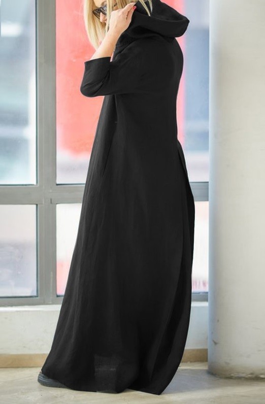 Naisten maxi-mekko hupulla
