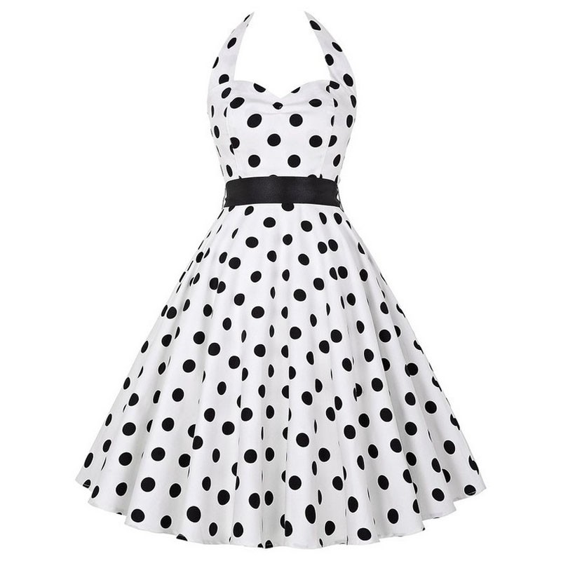 Naisten mekko, jossa on nauha kaula-aukossa.